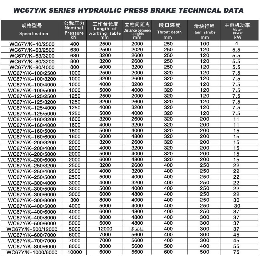 したがって、厚さ2 mmx幅2500mmの軟鋼を曲げるには、WC67Y-40T/2500プレスブレーキが必要です。